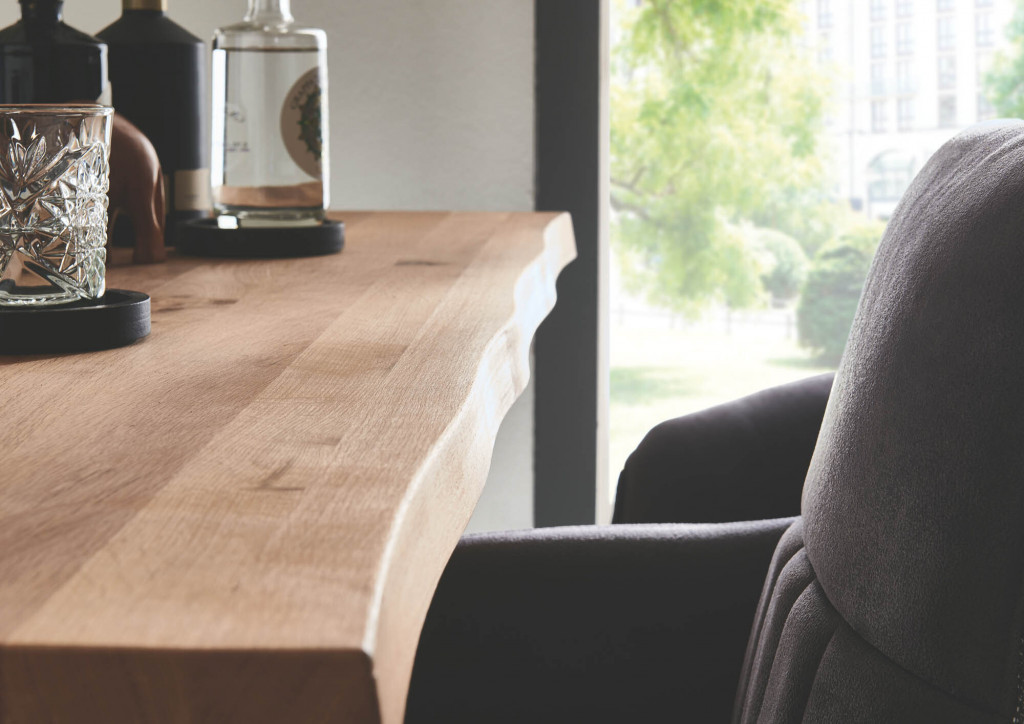 Erleben Sie die perfekte Symbiose aus natürlicher Eleganz und industriellem Charme mit unserem Tresentisch. Die massive Tischplatte mit gefräster Baumkante verleiht jedem Raum eine einzigartige, organische Ästhetik. Besonders hervorzuheben ist das robuste Eisengestell, das nicht nur Stabilität und Langlebigkeit garantiert, sondern auch einen modernen, industriellen Look schafft. Verwandeln Sie Ihr Zuhause in eine stilvolle Oase mit einem Tresentisch, der durch seine beeindruckende Materialkombination und sein außergewöhnliches Design besticht.