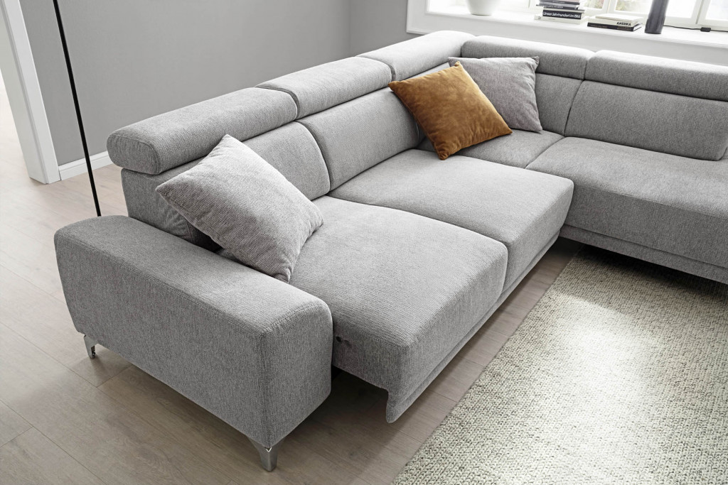 Wir präsentieren Ihnen das exklusive Ecksofa der renommierten Marke Stilecht, ein Möbelstück, das Komfort und Eleganz in Ihrem Wohnraum perfekt vereint. Dieses hochwertige Sofa ist nicht nur äußerst bequem, sondern auch funktional gestaltet, um Ihren Ansprüchen gerecht zu werden. Das Ecksofa von Stilecht zeichnet sich durch seine Kopfteilverstellung aus, die es Ihnen ermöglicht, Ihre Sitz- oder Liegeposition individuell anzupassen. Sie können den Neigungswinkel des Kopfteils ganz nach Ihren Bedürfnissen einstellen - ob zum entspannten Lesen, für einen gemütlichen Fernsehabend oder einfach zum Ausruhen. Ein weiteres Highlight dieses Sofas ist der motorische Sitzvorzug bei dem 2-Sitzer. Mit einer einfachen Handbewegung lässt sich die Sitzfläche vorstellen und bietet so zusätzlichen Platz. Diese Funktion sorgt dafür, dass jeder auf diesem Sofa seinen persönlichen Wohlfühlplatz findet. Das Ecksofa der Marke Stilecht besticht zudem durch sein elegantes Design. Es fügt sich nahtlos in jede Einrichtung ein und verleiht jedem Raum eine warme und einladende Atmosphäre. Die qualitativ hochwertigen Materialien und die erstklassige Verarbeitung garantieren Langlebigkeit und Beständigkeit gegen alltägliche Abnutzungen. Dieses edle und funktionale Ecksofa wird zweifellos zu einem Mittelpunkt in Ihrem Zuhause werden. Es lädt dazu ein, sich zurückzulehnen, zu entspannen und die Zeit in vollen Zügen zu genießen. Gönnen Sie sich den Luxus von Komfort und Stil mit dem Ecksofa der Marke Stilecht.