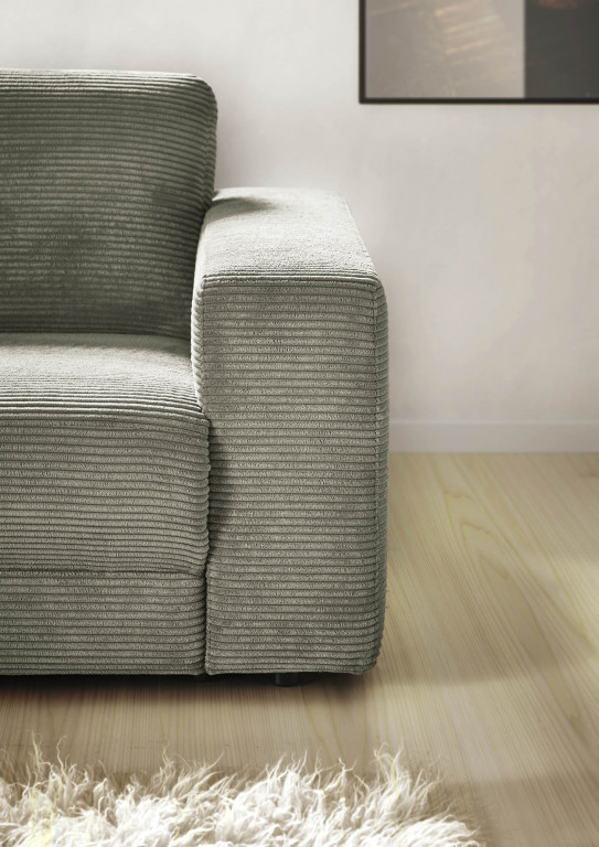 88% Polyester, 12% Polyacryl, Farbe stone, Rücken echt, Sitz PUR-Schaum, Gleiter, Sitzhöhe 44 cm, Sitztiefe 64-106 cm, bestehend aus: