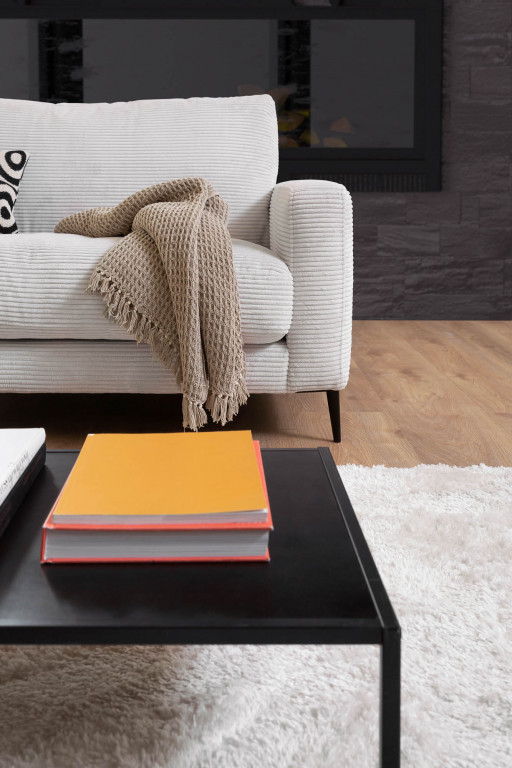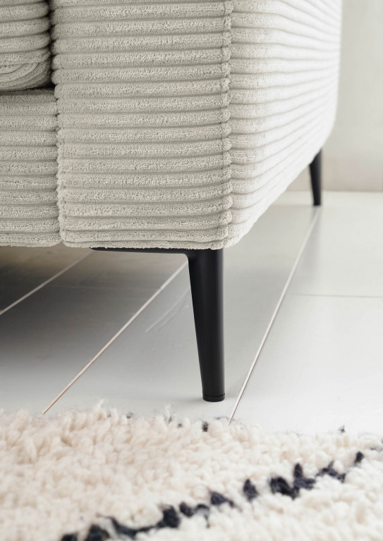 88% Polyester, 12% Polyacryl, Farbe light grey, Metallfüße schwarz matt, Sitzhöhe 44 cm, Sitztiefe 64 cm, bestehend aus: